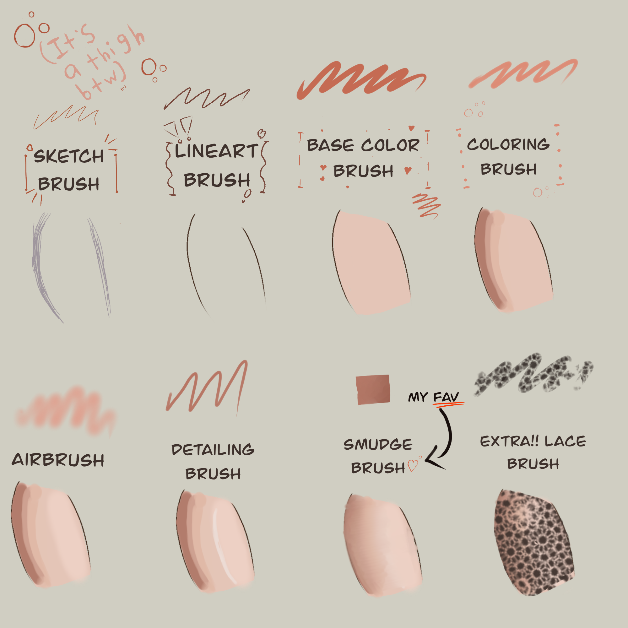 A brush set with 8 brushes for Procreate that has a bonus lace brush!